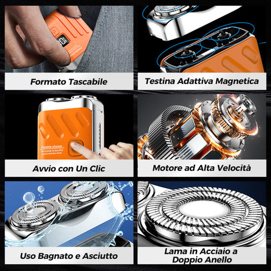 Rasoio Elettrico Rotativo Portatile a Doppio Anello