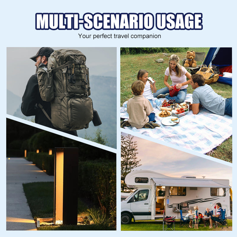 DESIGN FLESSIBILE – La struttura compatta e flessibile lo rende facile da trasportare e si adatta alle condizioni all'aperto. Perfetto per le escursioni, il campeggio o come ricarica di emergenza.