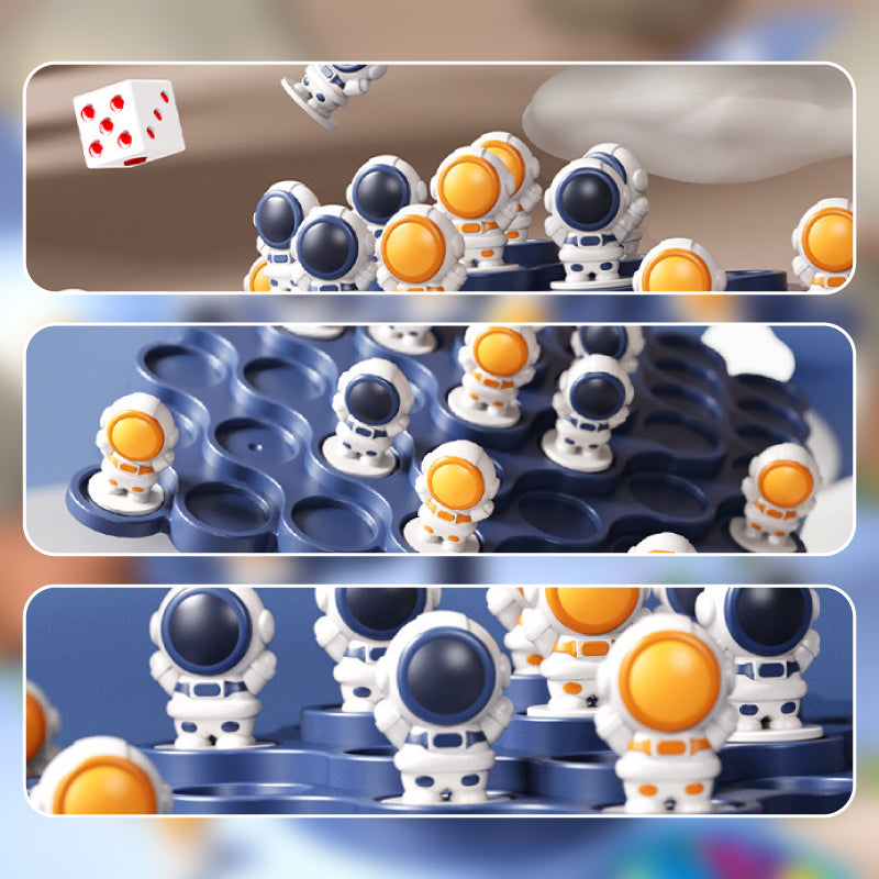 • Gioco 2: Posiziona l'astronauta in base al lancio dei dadi, poi gira la ruota delle avventure per determinare il perdente e la punizione.