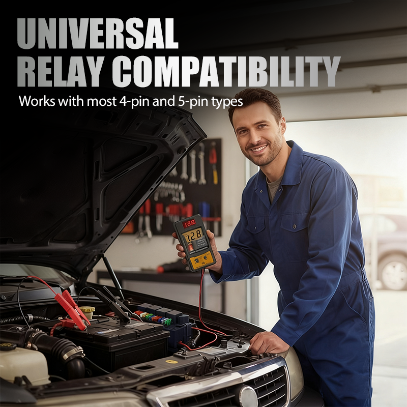 COMPATIBILITÀ UNIVERSALE - Progettato per la massima versatilità, questo tester è universalmente compatibile con la maggior parte dei relè automobilistici standard a 4 e 5 pin. Ciò elimina la necessità di più tester specializzati, assicurandoti di essere preparato per vari scenari diagnostici.