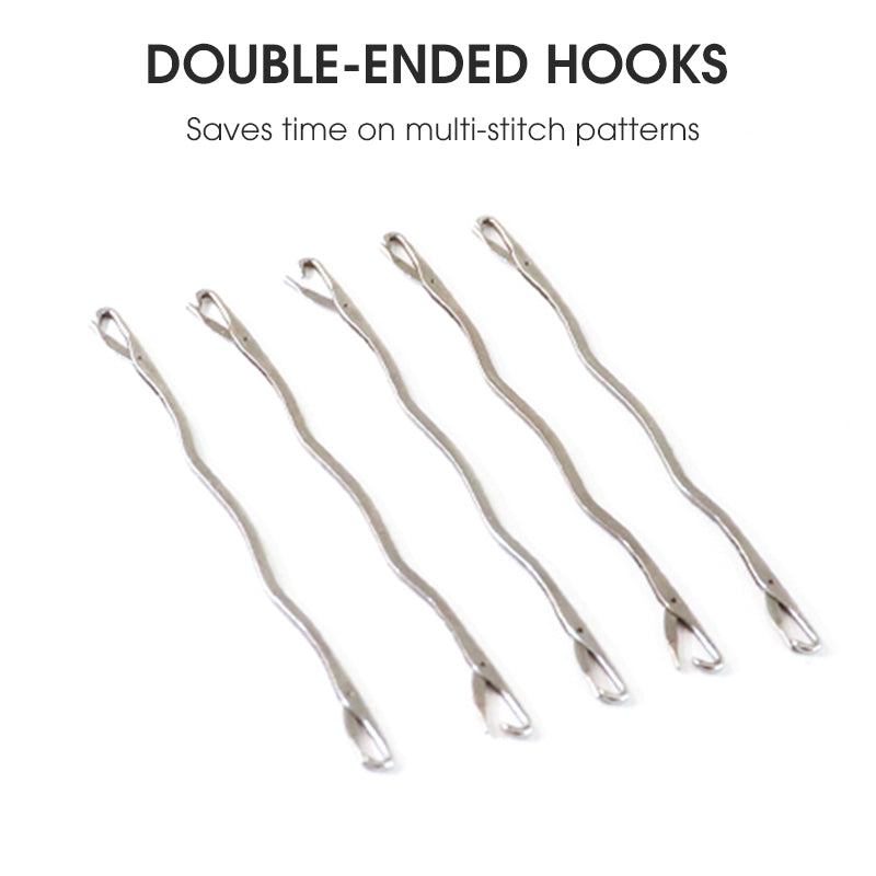 UNCINETTI A DOPPIA PUNTA PER MASSIMA EFFICIENZA – Gli uncinetti a doppia punta da 12 e 14 aghi permettono di cambiare misura all'istante senza cambiare utensile, risparmiando tempo sui modelli con più punti.