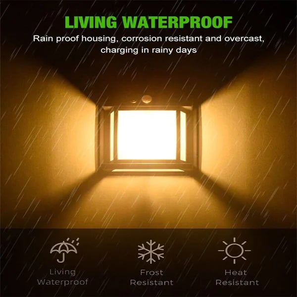 Resistente agli agenti atmosferici: la lampada da parete solare per esterni ha un design semplice ma durevole ed è realizzata in materiale plastico ecologico di alta qualità, questa lampada da parete solare a LED è impermeabile e può resistere a pioggia, neve o altre condizioni meteorologiche estreme ed è garantita per resistere alle intemperie tempo atmosferico.