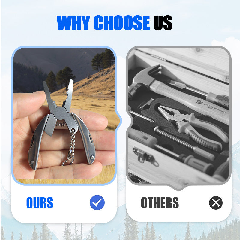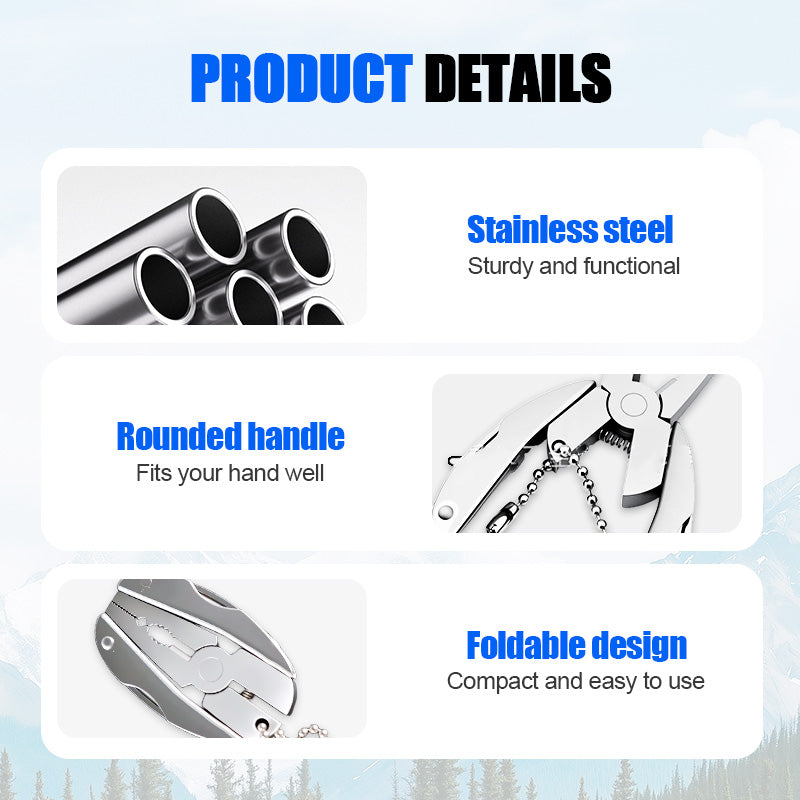 UTENSILE MULTIFUNZIONALE: Include pinze, tronchesi, cacciavite a croce, cacciavite a testa piatta, lima, coltello, apriscatole e apribottiglie, adatto per riparazioni quotidiane, attività all'aperto o emergenze.