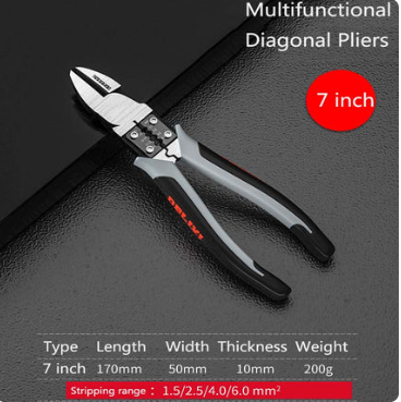 Multifunzione : questo strumento può essere utilizzato come pannello isolante, funziona anche come Drahtschneider, Zange. die Abisolierzange kann mit einem Schraubendreher gelöst werden. Es kann 3-Zoll-Stahlnägel, 4², 6², 8² Drahtseile schneiden, Kann 1.0²,1.5², 2.5², 4², 6², Drähte abisolieren.