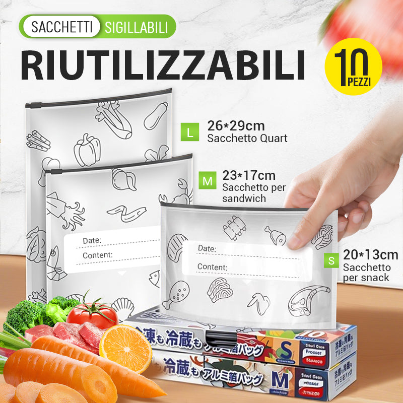 š„Best seller mondialeš Offerta limitata! Compra 3 e ricevi 2 in omaggioš„¦Sacchetti riutilizzabili in alluminio sigillabili per la conservazione degli alimenti