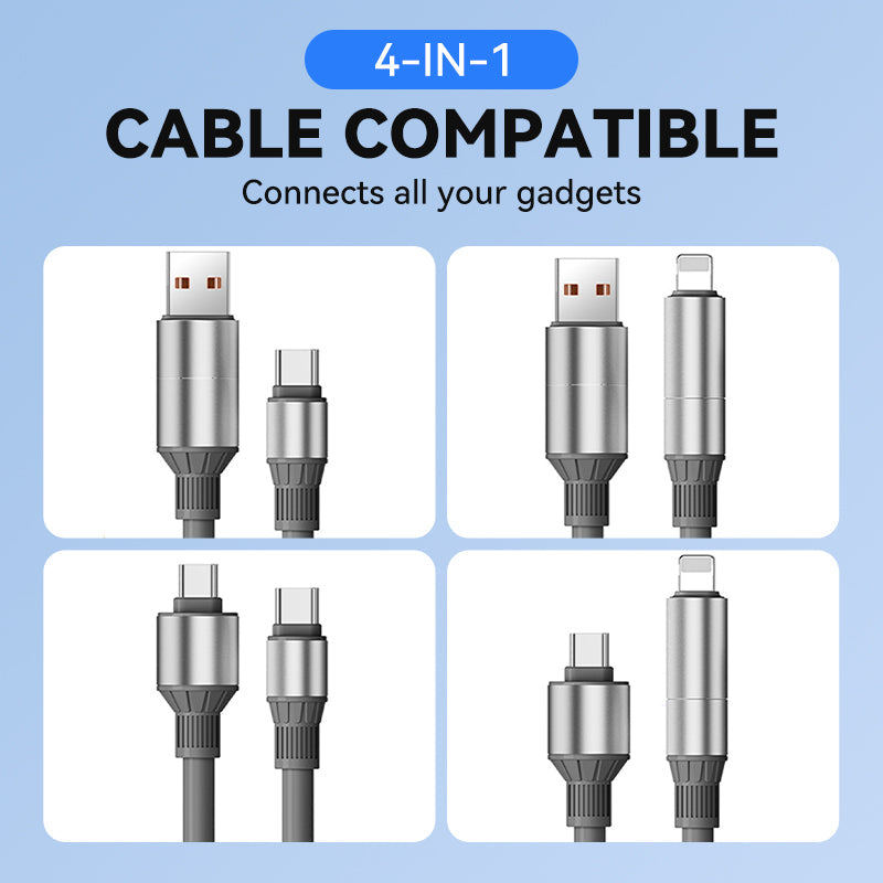 SUPPORTO PROTOCOLLO UNIVERSALE - Un unico caricabatterie per tutti i tuoi dispositivi! Passa senza problemi tra PD, QC, AFC e altri principali protocolli di ricarica rapida. Abbinato al nostro cavo di ricarica 4-in-1 opzionale (1,2 m), si collega senza sforzo a più dispositivi, dicendo addio al groviglio di cavi.
