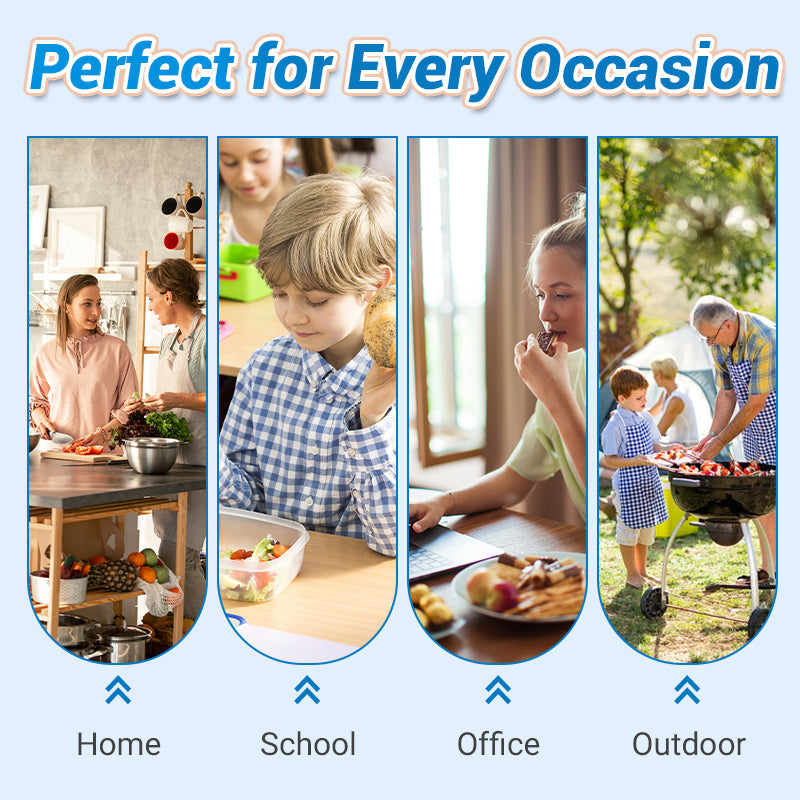 AMPIA RESISTENZA ALLE TEMPERATURE - Progettati per resistere a temperature da -60°C a 110°C. Ciò consente un utilizzo sicuro nei congelatori e per il riscaldamento, offrendo una soluzione di conservazione versatile per diverse esigenze di conservazione degli alimenti senza degradazione del materiale.