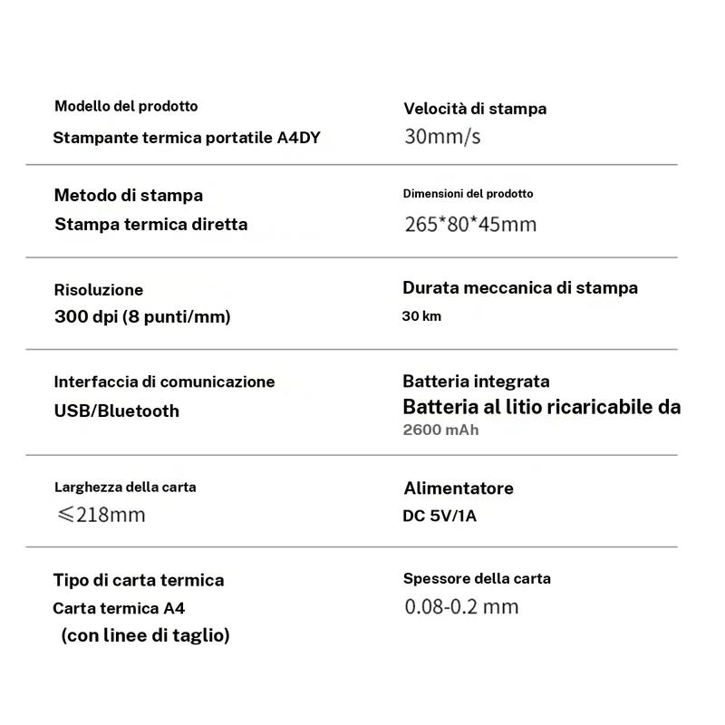 📢🔥2026 Uutuudet - 50% alennus!🏆Stampante portatile A4, 1 set di stampante fotografica wireless ricaricabile tramite USB, stampante da viaggio compatibile con Bluetooth per sistemi Windows, accessori per ufficio