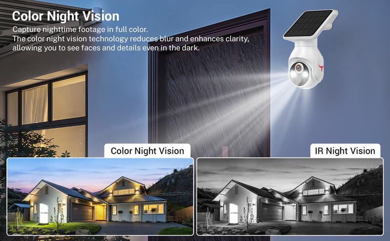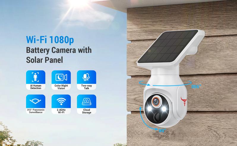 Telecamera di sicurezza solare wireless per esterni, sorveglianza WiFi alimentata a batteria 1080P, rilevamento umano, visione notturna a colori, WiFi 2,4G, live view e archiviazione cloud